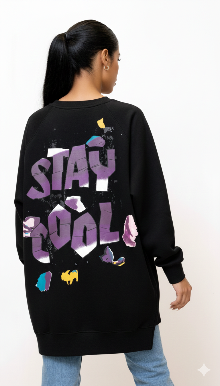 • Oversized relaxed streetwear fit • Free size (fits most body types) • Female design